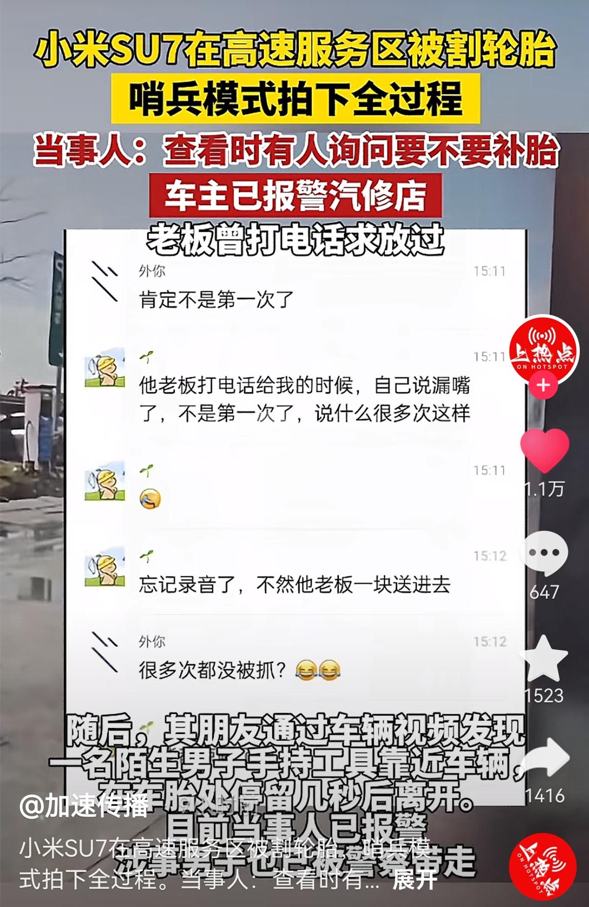 與此同時,還有很多網友爆料,他們的車子也曾經在涉事服務區輪胎被劃壞,直言肇事者是慣犯。