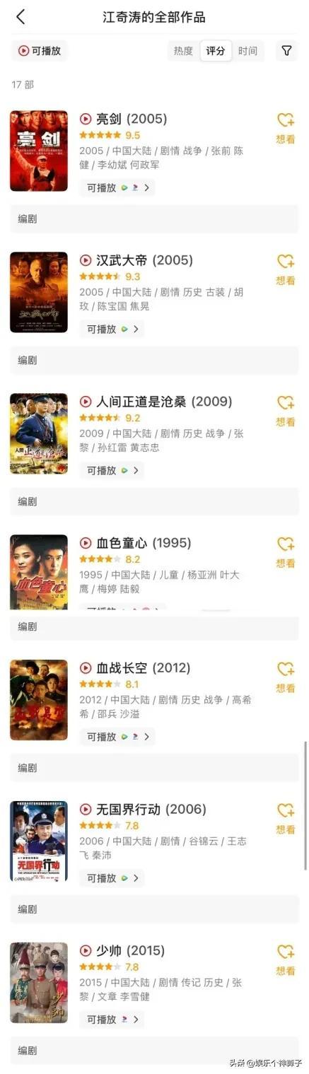 江奇濤,可謂影視劇界的神來之筆,他的作品欄更是讓觀衆驚歎。