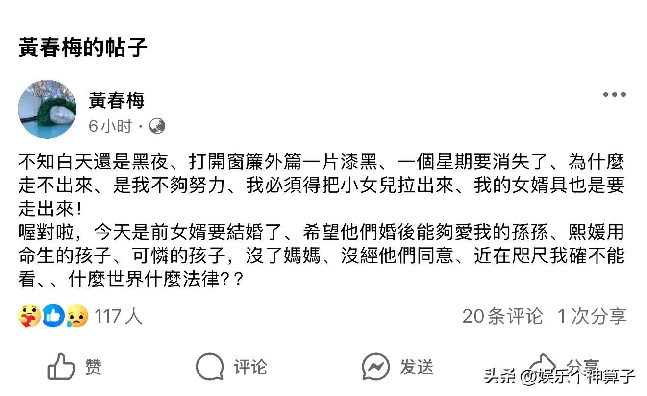 反而抱怨外孫和外孫女近在咫尺,沒有汪小菲家人的同意,卻不能相見,並希望前女婿結婚以後,能夠對兒女好一些,可見的孩子,沒有了媽媽。