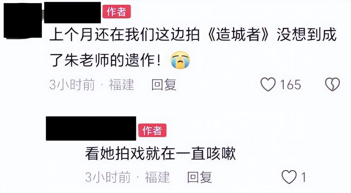 有網友發佈悼念文章稱,在《造城者》快殺青時,她曾看到朱媛媛拍戲,當時朱媛媛時不時的咳嗽。