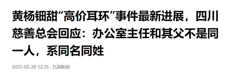 四川慈善總會回應他們單位的楊偉和黃楊鈿甜的父親楊偉的確是兩個人,他們只是同名同姓而已。