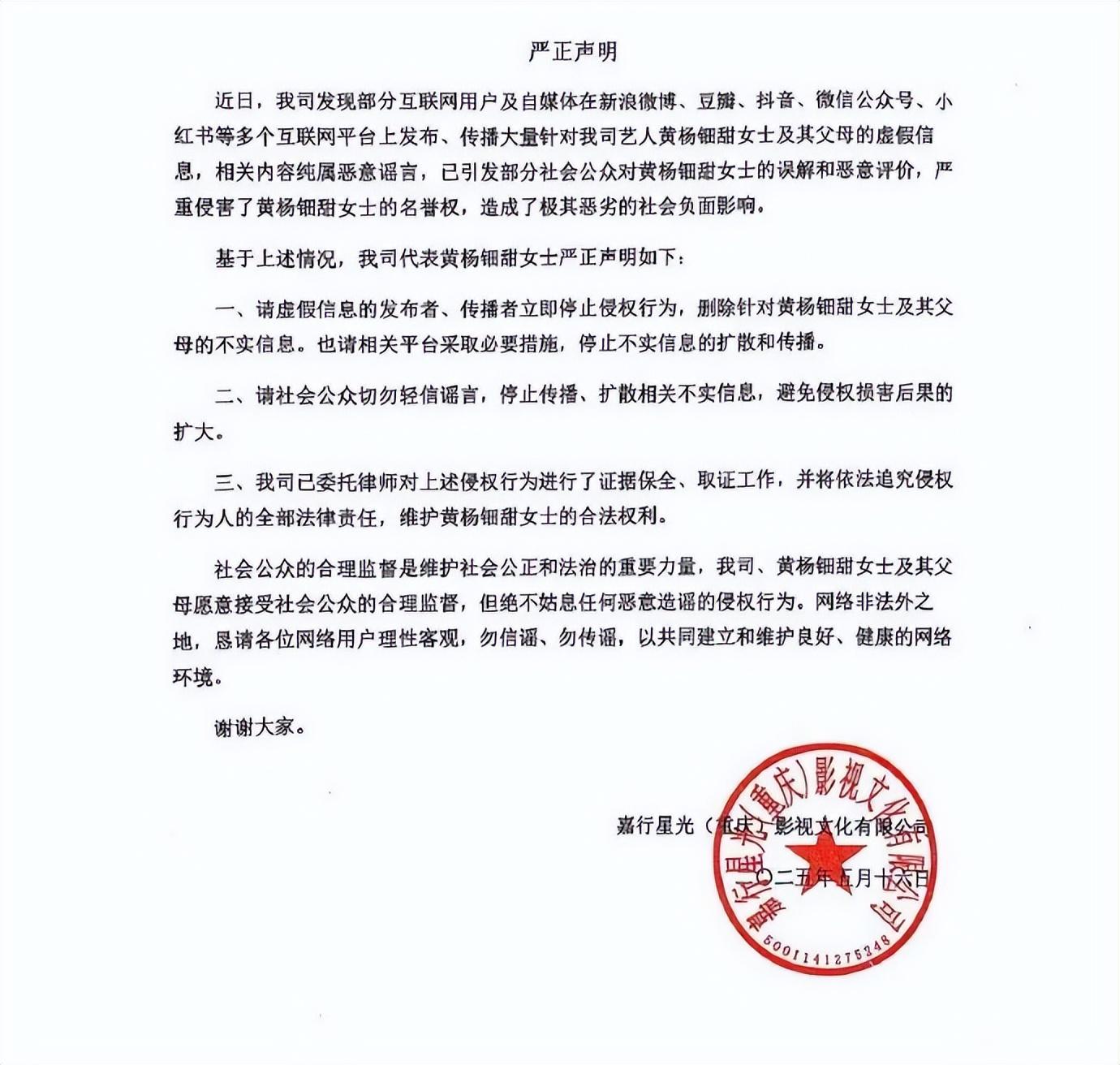 面對網絡的熱議,黃楊鈿甜的經紀公司先是發文闢謠,但網友們並不買賬。