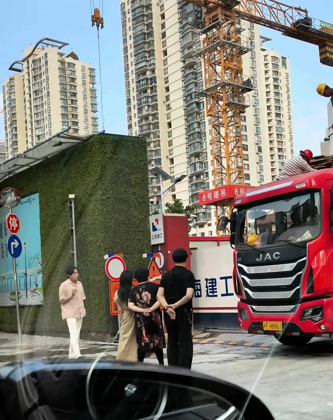 比如有網友偶遇了秦昊帶着老婆和媽媽在上海看房。