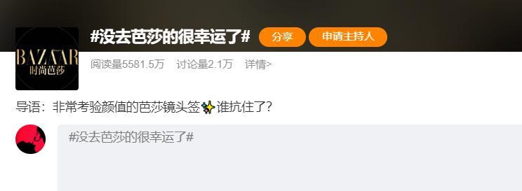 這下不得了,拍鏡頭籤的明星生圖曝出,“沒有去芭莎很幸運了”的詞條登上了熱搜。