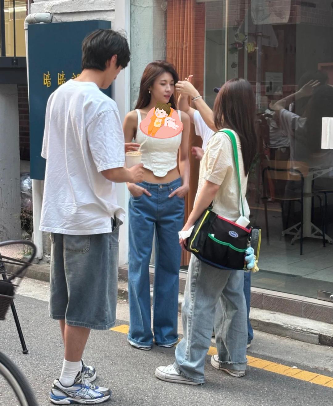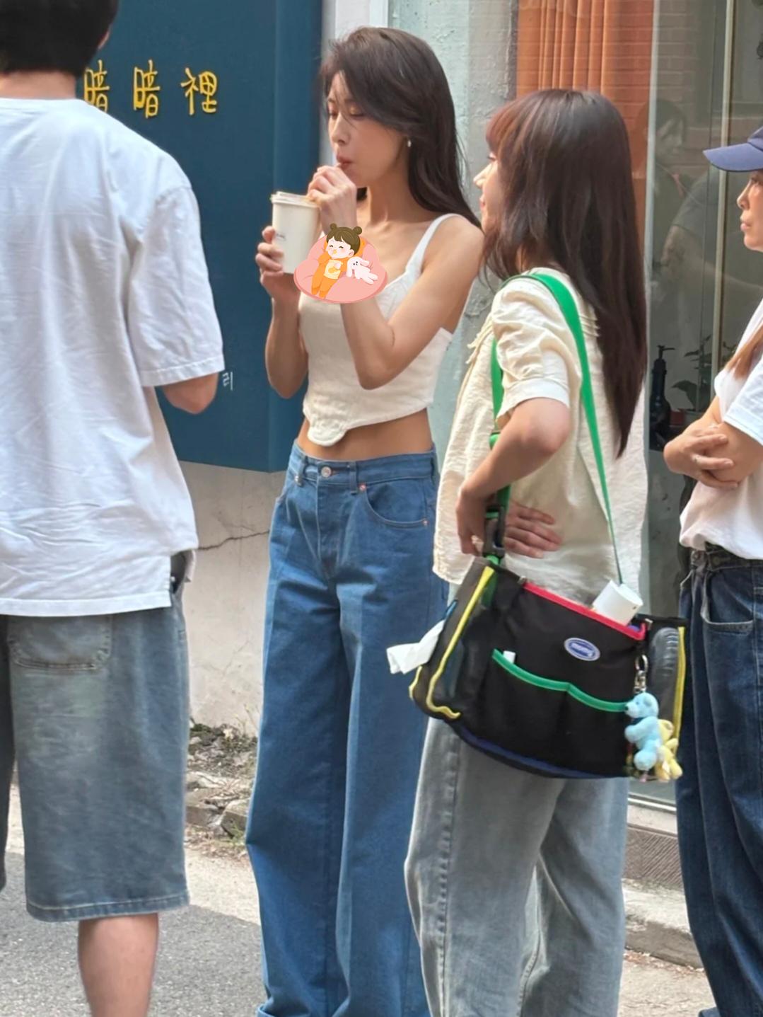 爲什麼這麼說呢?一來是因爲工作人員在給河智苑整理頭髮,二來是因爲有一張照片中河智苑在悠閒的喝飲料。