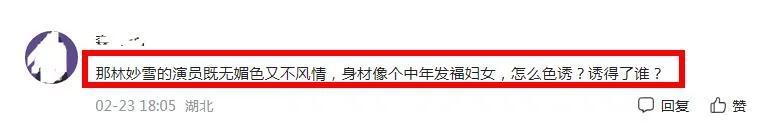 “那林妙雪的演員既無媚色又不風情,身材像箇中年發福婦女,怎麼色誘?誘得了誰?”