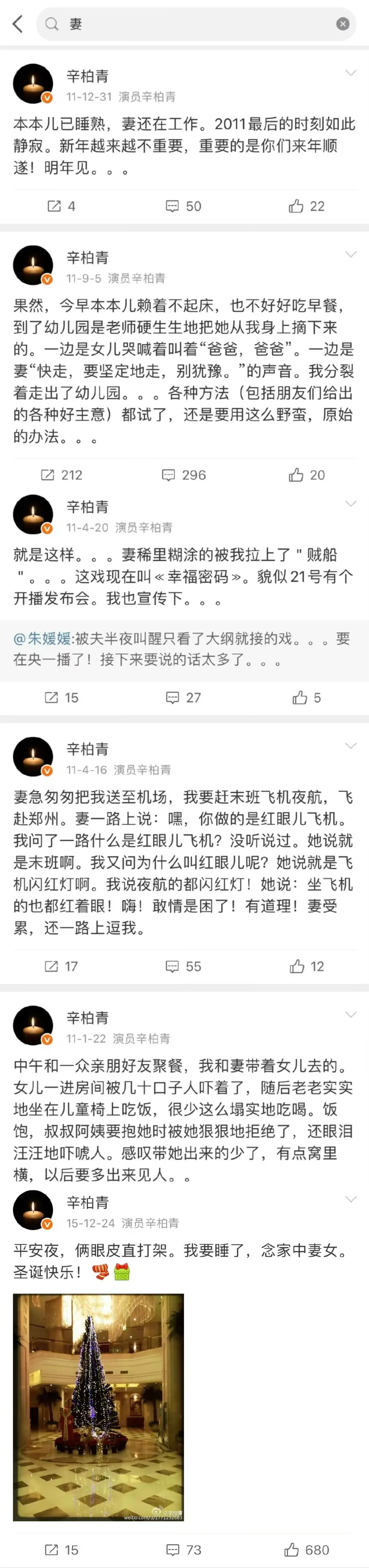 而在朱媛媛患癌之後,辛柏青便不再社交賬號上分享家庭生活了。他默默地陪着妻子抗癌,努力拍戲賺錢。