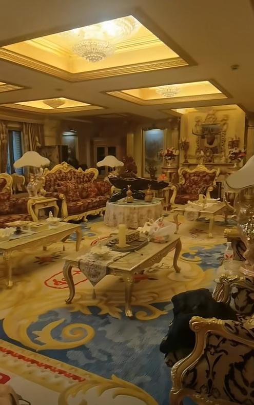 該網友還拍攝了方剛別墅的一樓,可以說是十分金碧輝煌。