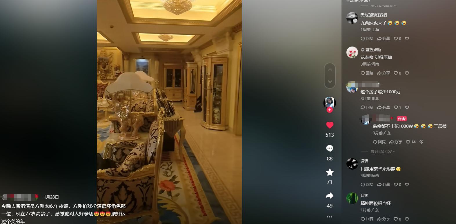 有去過方剛別墅的網友爆料,方剛住的是三層別墅,裝修費最少花了1000萬。