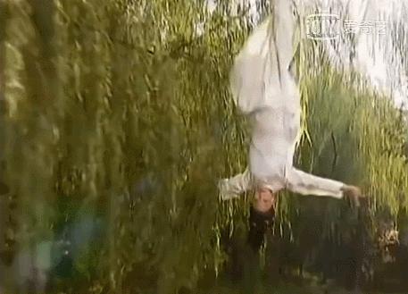 蔣勤勤倒掛在樹枝上,何潤東騎在馬上,兩個人越靠越近,表情銷魂享受,最後嘴脣神奇的吸在一起。