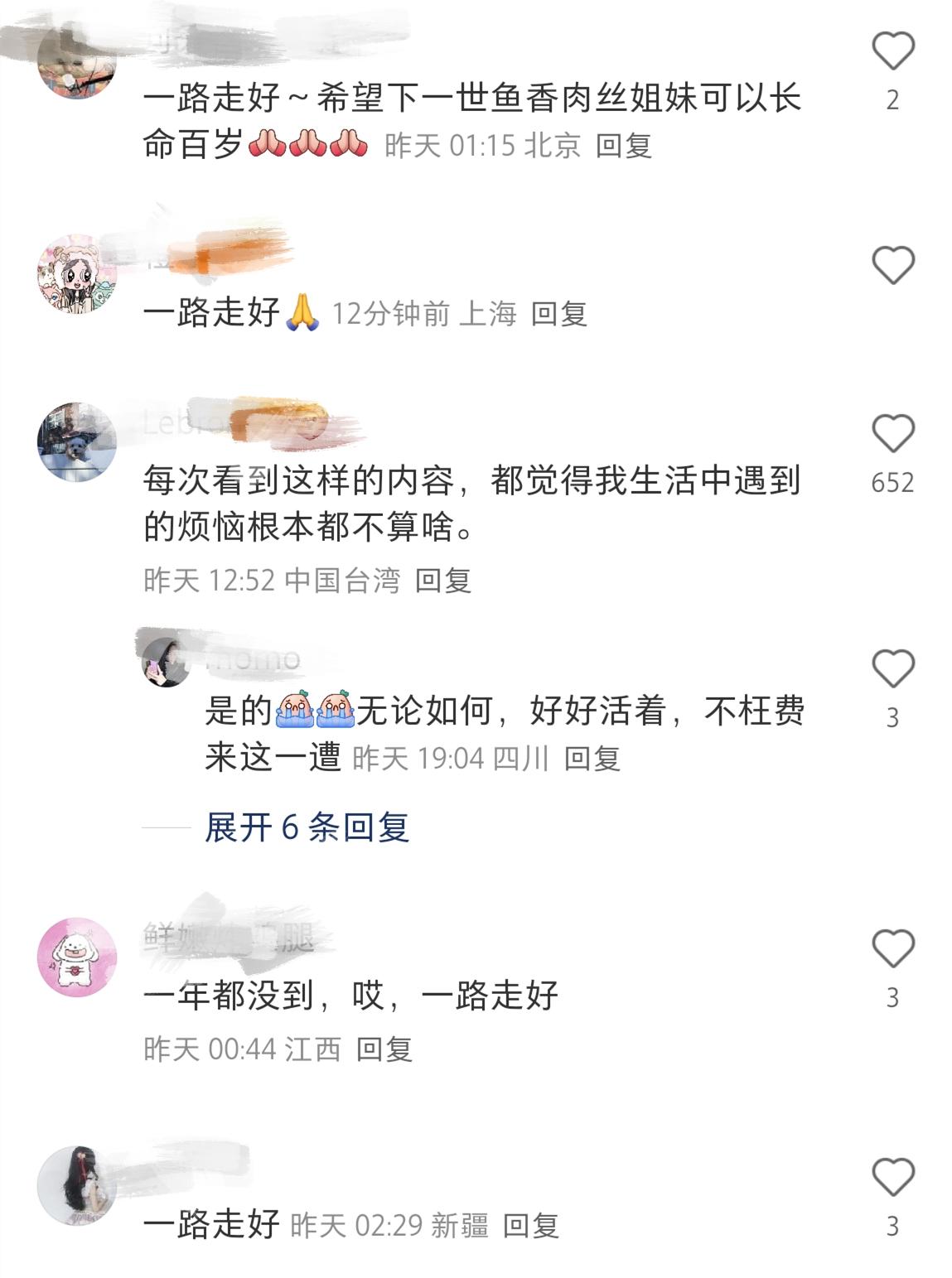 消息傳出,一直關注魚香肉絲的網友震驚不已,大家都很心痛,因爲大家知道魚香肉絲確診纔不到一年,就看着她的生命這麼快的衰敗了。
