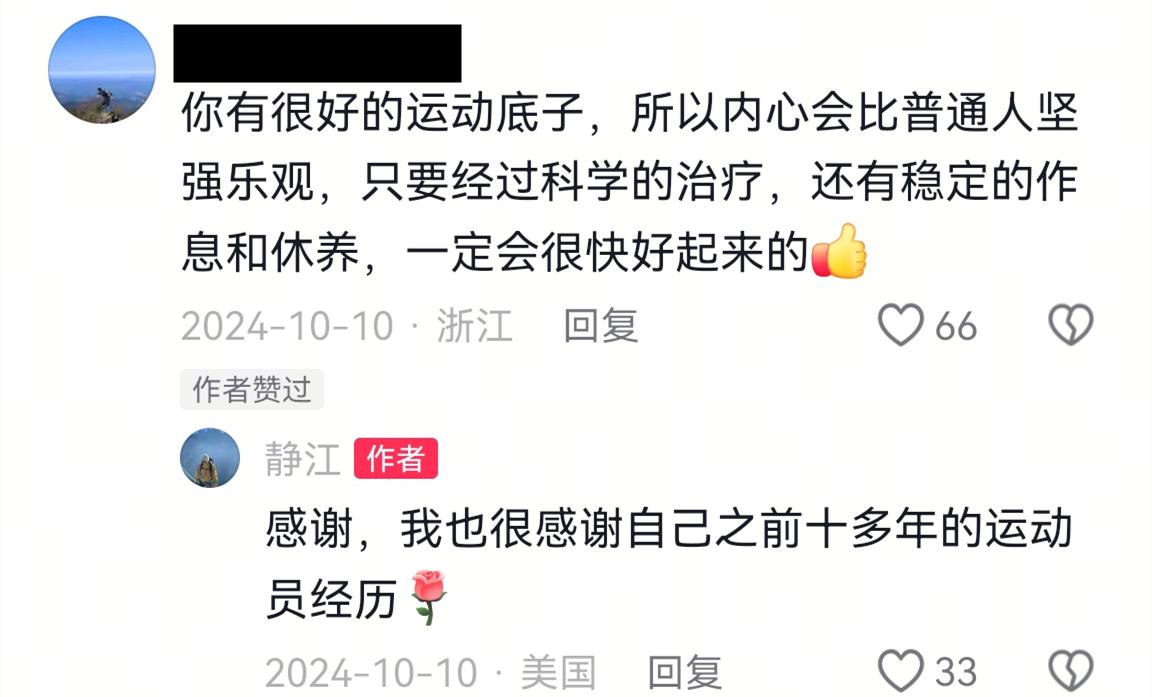 在熬過心理的痛苦時期後,靜江接受了現實,他積極的與病魔抗爭。