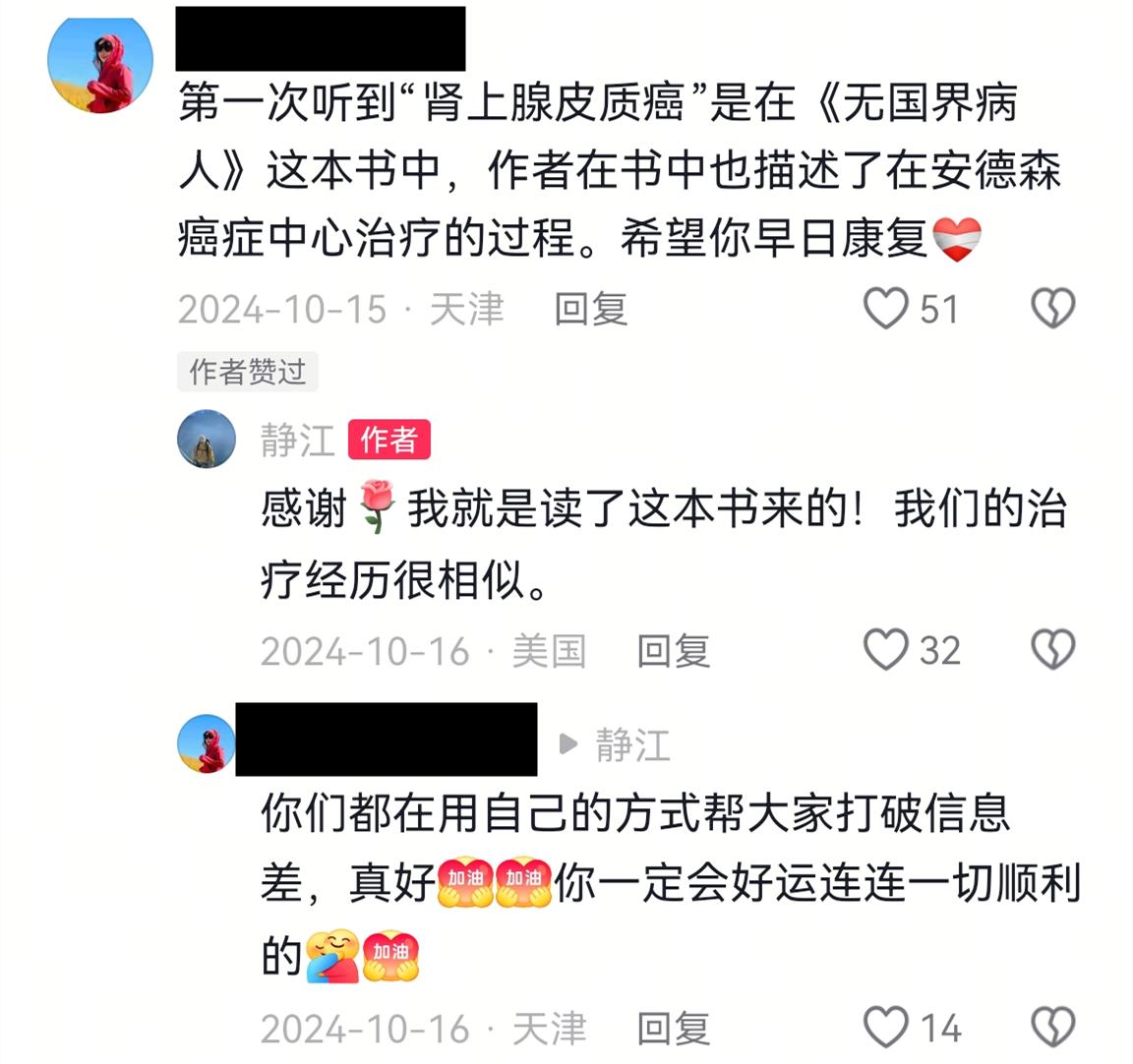 於是爲了尋求生的希望,靜江前往美國安德森進行治療。