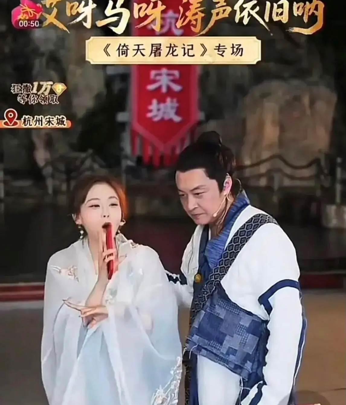 從直播視頻中可以看到,馬景濤穿着《倚天屠龍記》中的張無忌的戲服,在直播間還原了《倚天屠龍記》中的經典劇情,隨後他又唱又跳,直播間人氣高漲。