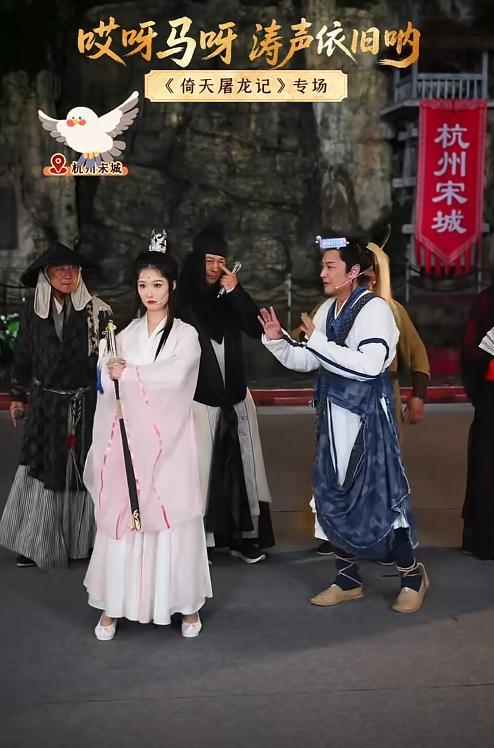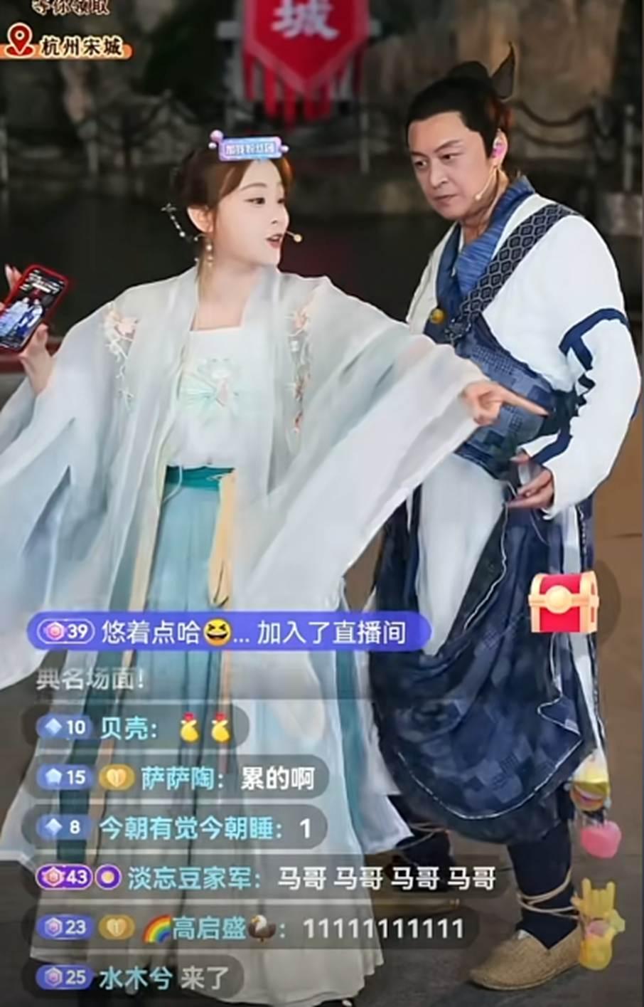 從直播視頻中可以看到,馬景濤穿着《倚天屠龍記》中的張無忌的戲服,在直播間還原了《倚天屠龍記》中的經典劇情,隨後他又唱又跳,直播間人氣高漲。