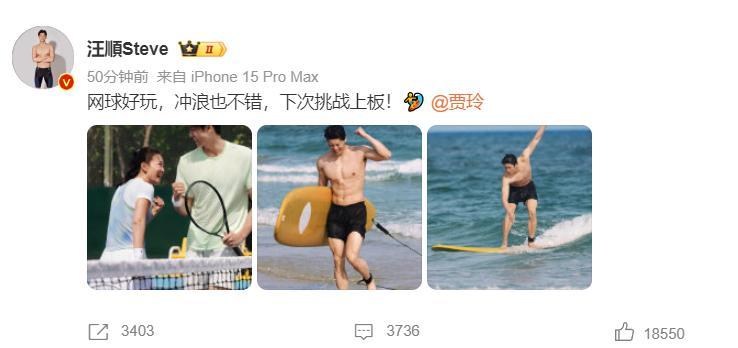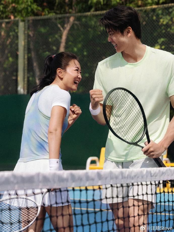 值得一提的是,在賈玲發文不久,汪順也曬出了和賈玲打網球的照片。