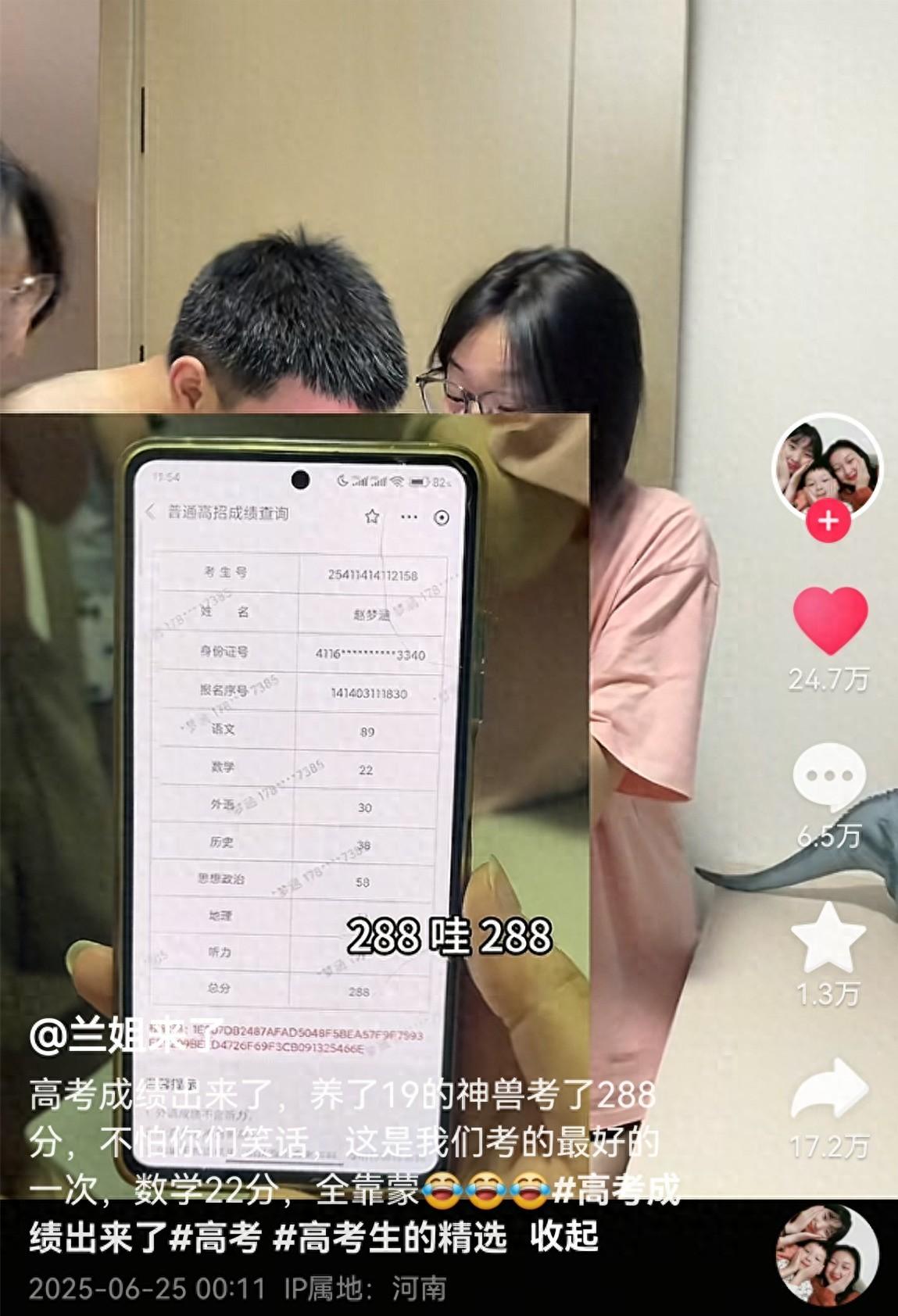 近段時間,蘭姐的賬號流量暴漲,只因她發佈了幾條有關女兒高考成績查詢的視頻。