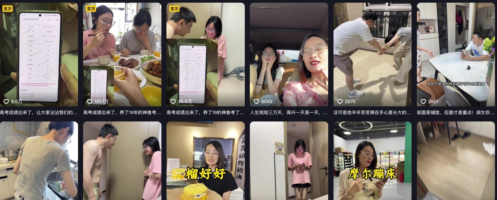 也因此在女兒第一條查分視頻火了之後,她又多次發佈了相關視頻。她爲什麼這麼做,明眼人都看得出來,是爲了流量。