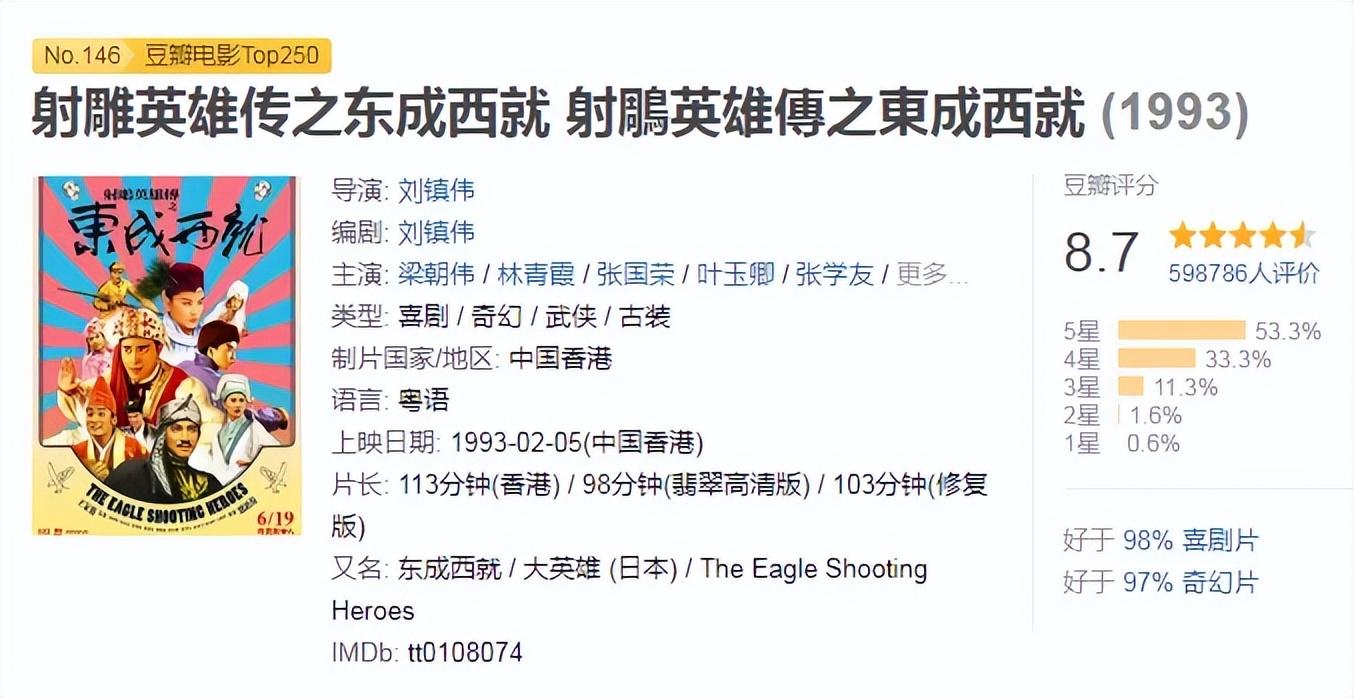 而無意之作的《東成西就》,卻贏麻了,不僅票房突破2000萬,而且時至今日,都是經典之作。