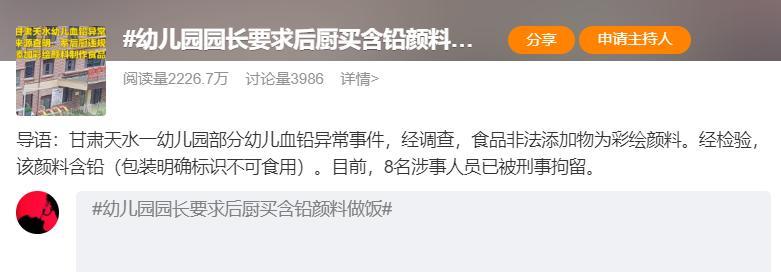 果然有情況!官方通報幼兒鉛中毒事件,園長主動投毒,8人被刑拘