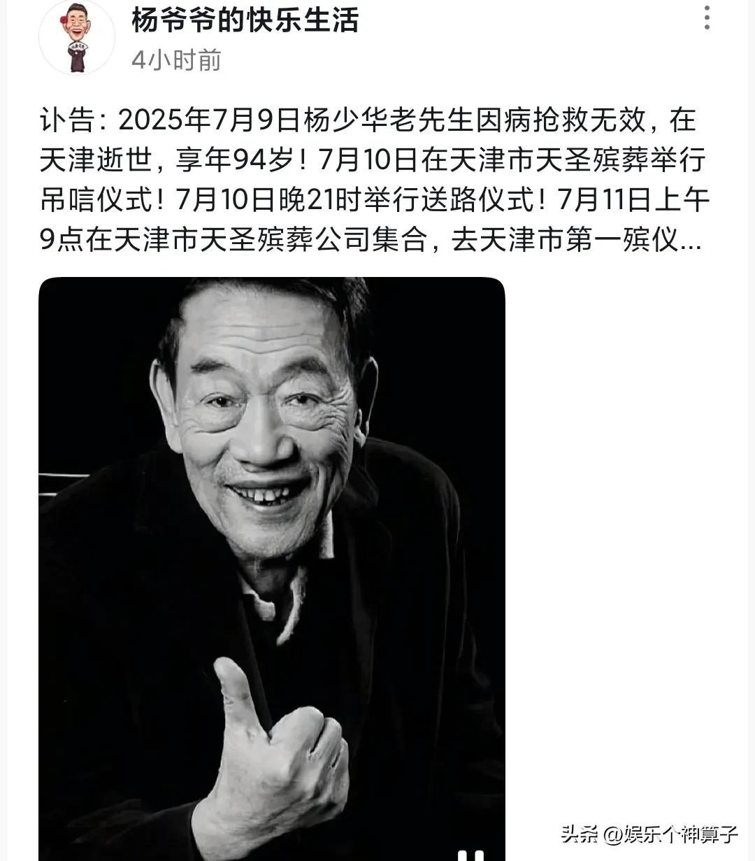 7月9日,著名相聲演員楊少華去世,家人並沒有透露太多消息,很多信息大家都是通過媒體報道得知,尤其是老爺子大熱天坐輪椅參加剪綵典禮,引發不小爭議。
