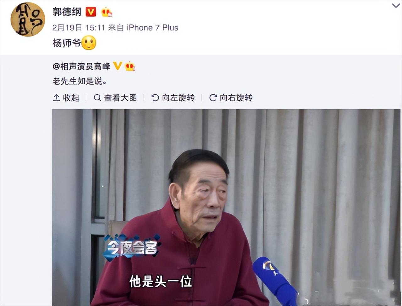 在相聲界郭德綱一直備受爭議,甚至受到打壓,但是楊少華公開發聲支持郭德綱。