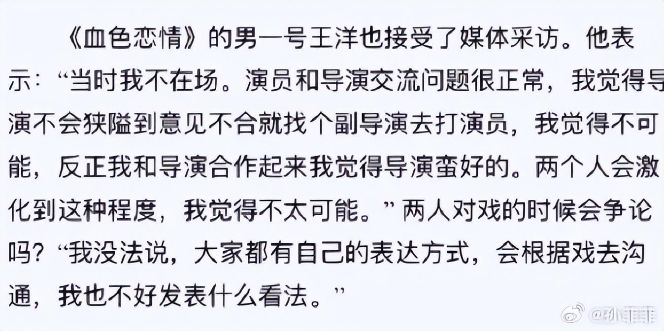 甚至還有網友扒出當年王陽的媒體採訪,在採訪中王陽說他不在現場,他不相信導演會派人打演員,他還說他和導演相處得挺好的。