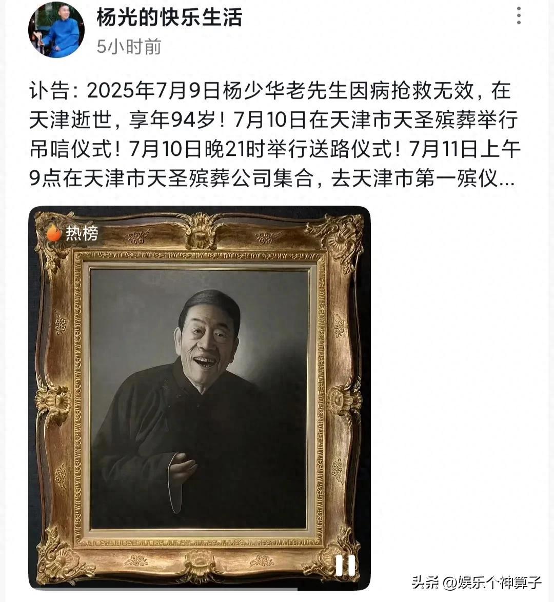 咱就說,雖然楊少華輩分高一點,不過,李金斗大熱天的能親自前來悼念老爺子,也算有情有義,特意科普一下,兩人並沒有合作的經歷,都是天津相聲界的前輩,於情於理,也該到場。