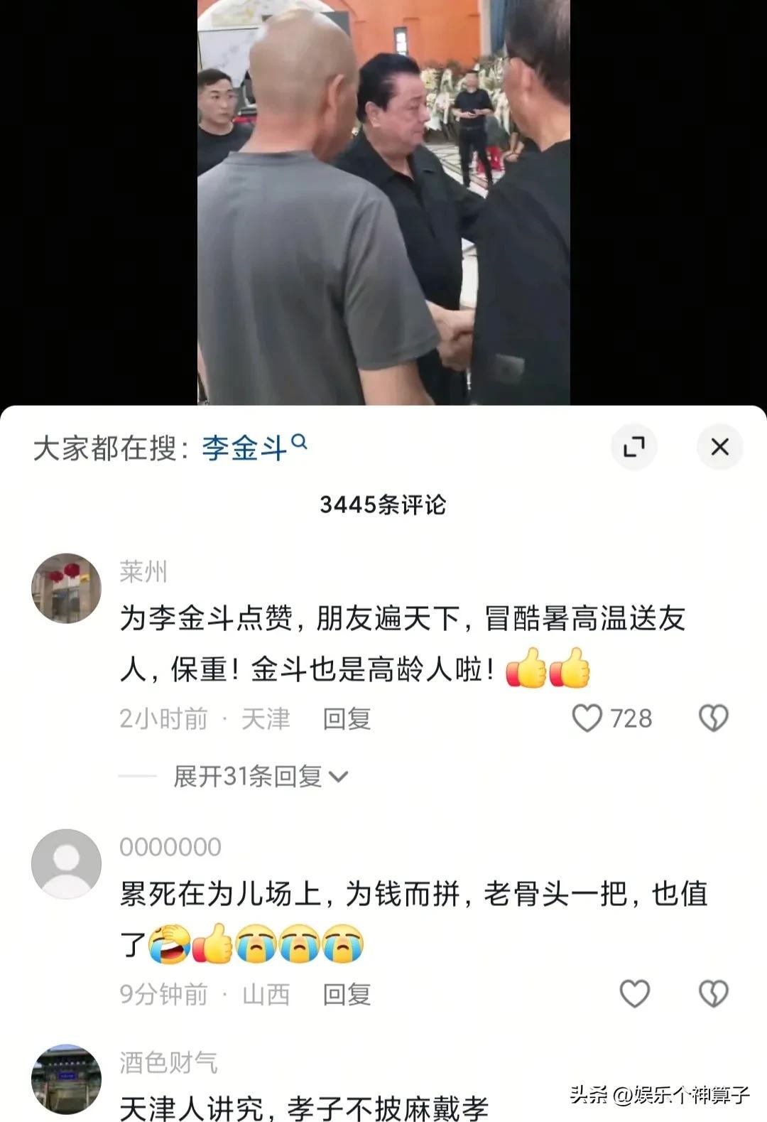一些網友紛紛誇讚李金斗冒酷暑送友人,大兒子哭的好傷心啊,從來沒有消費過爸爸,這是真的孝順。並感嘆相聲界很多老前輩都沒到場。