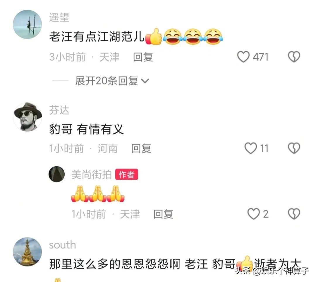 第二個,就是老汪,說實話,對這人不是太熟悉,不過,看起來非常活躍,屋裏休息時,讓豹哥給楊議鞠躬,很有大哥的風範,這麼做到底啥意思?讓人一頭霧水,估計一旁的人也都有點懵,網友倒是一陣誇讚。