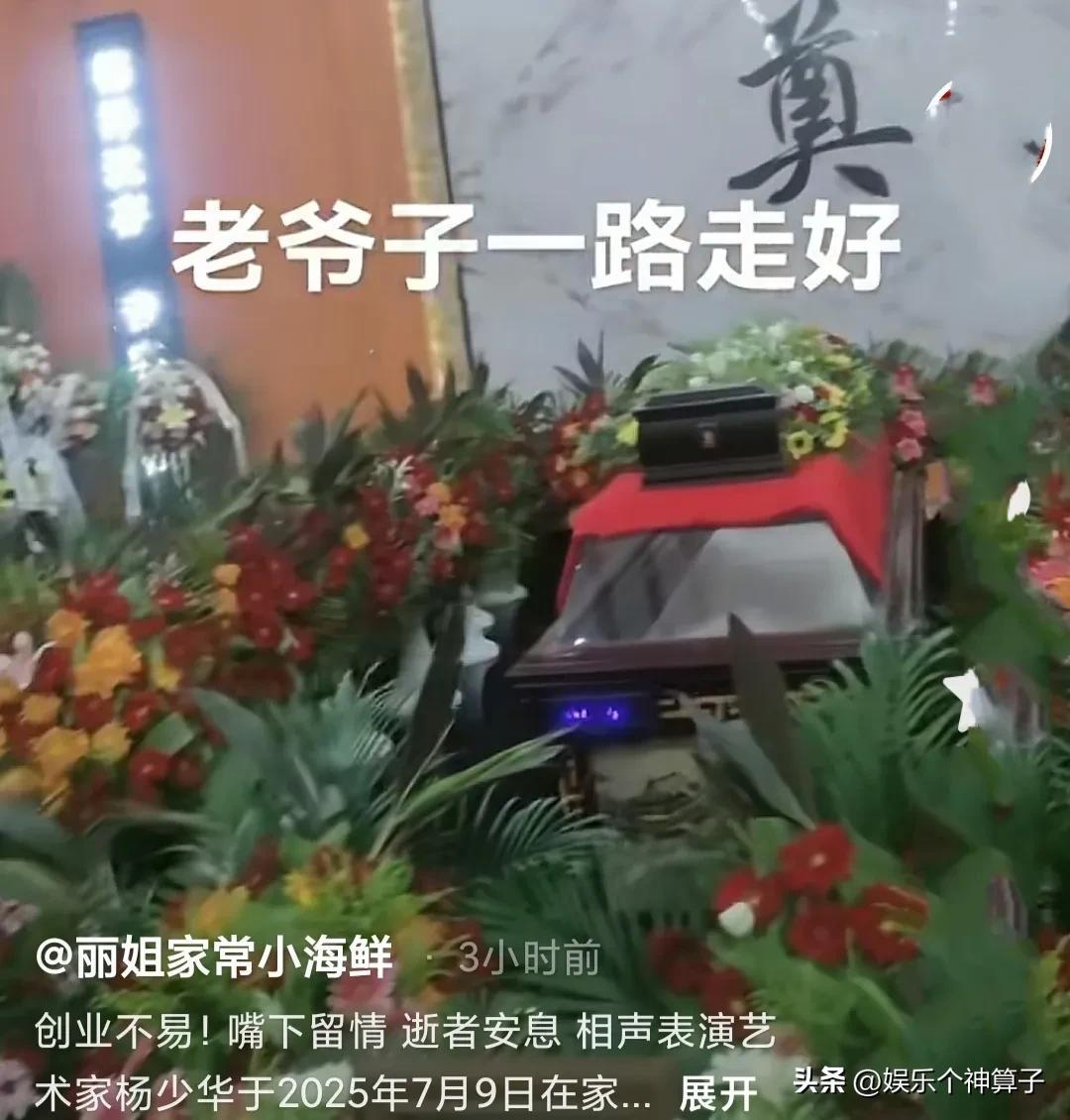 隨後,楊少華靈堂曝光,一位名叫“麗姐家常小海鮮”的網友在社交平臺曬出一組現場照片。