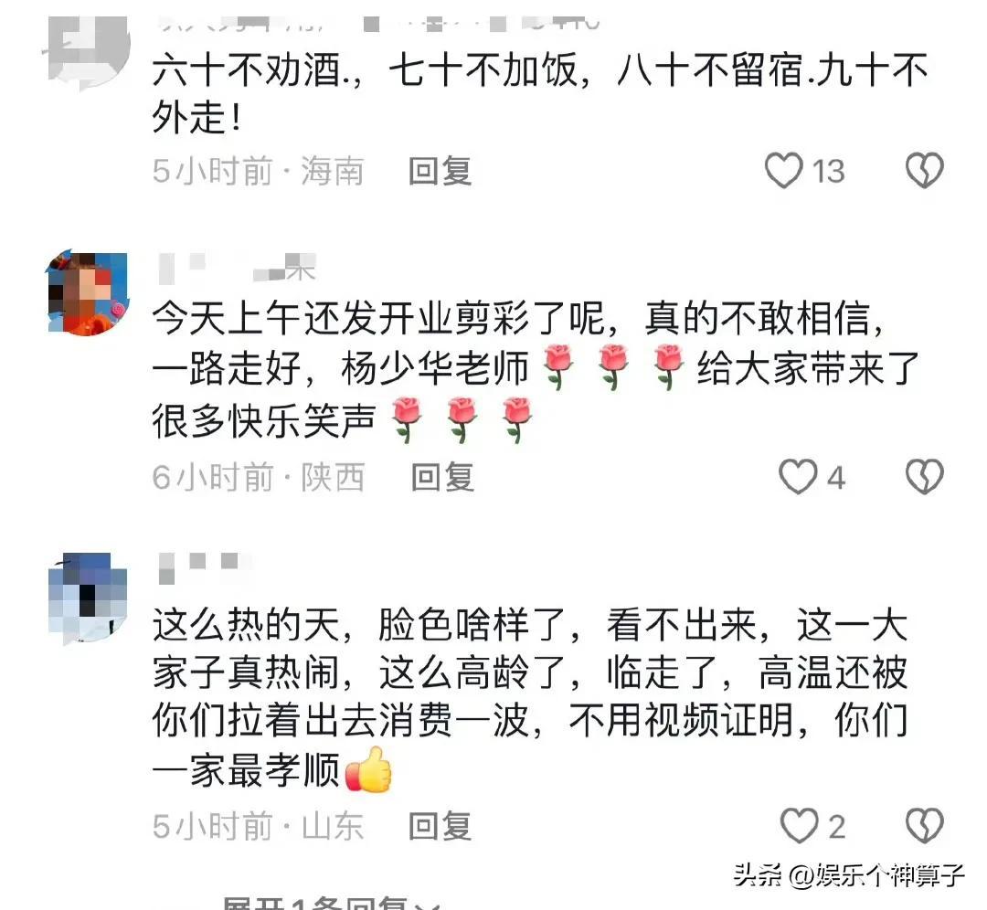 7月9日,著名相聲演員楊少華去世,家人並沒有透露太多消息,很多信息大家都是通過媒體報道得知,尤其是老爺子大熱天坐輪椅參加剪綵典禮,引發不小爭議。