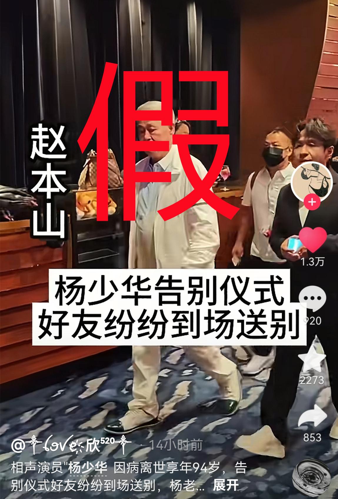 明明楊少華的遺體告別儀式還沒有舉行,卻有很多自媒體博主發視頻稱衆星參加了楊少華的遺體告別儀式。