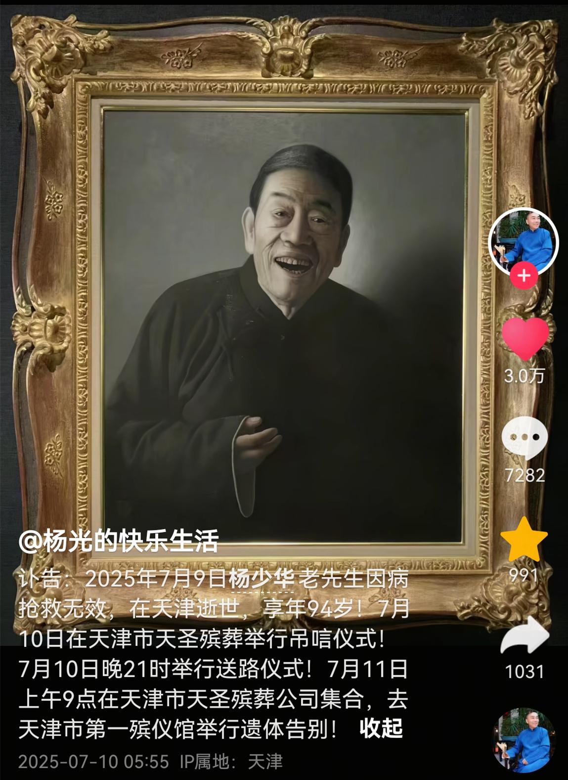 著名相聲演員楊少華走了。