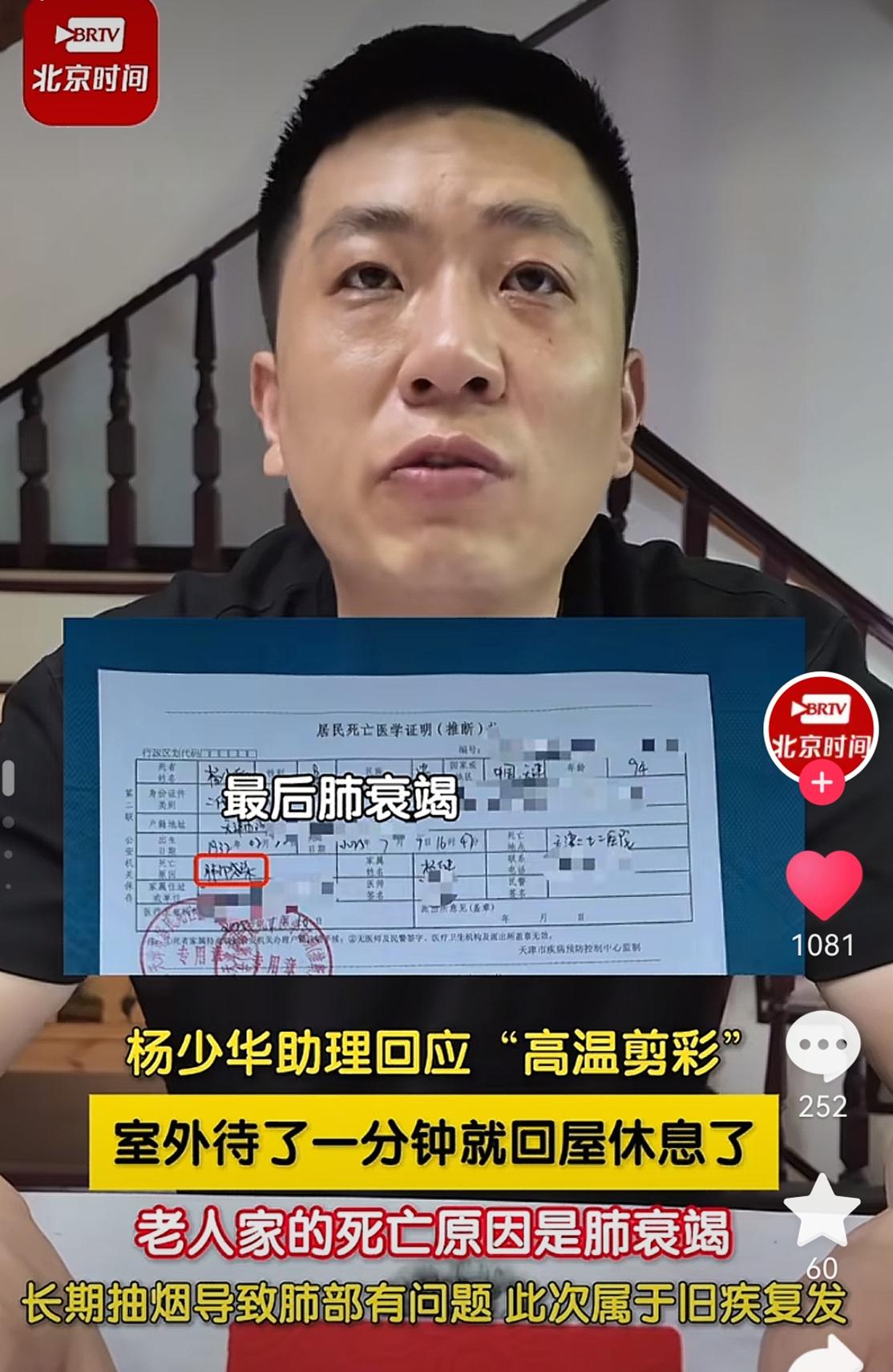 楊少華死亡醫學證明書曝光!死因是肺衰竭,生前一天最少一包煙
