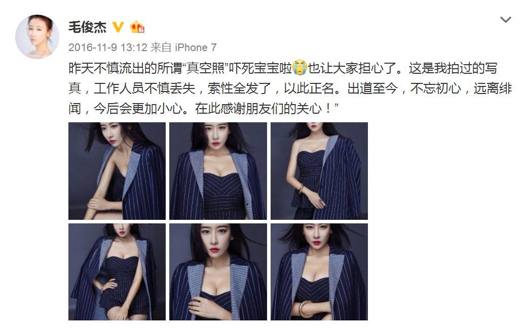 很快,毛俊傑本人就認領了這張照片,還發出了這個系列的寫真澄清,一看就是爽快人。