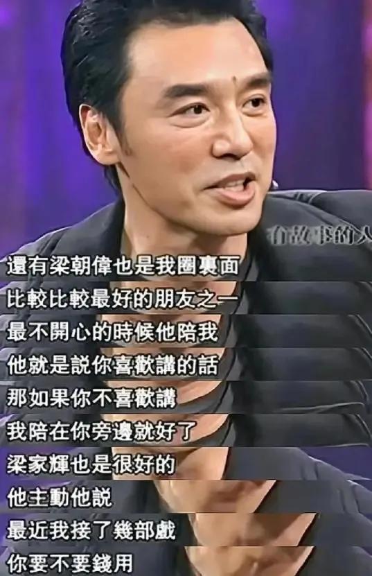 梁家輝拿到片酬就問他:“要不要錢用?”梁朝偉默默陪他散心,張國榮特意爲他加戲,讓他能賺點生活費。