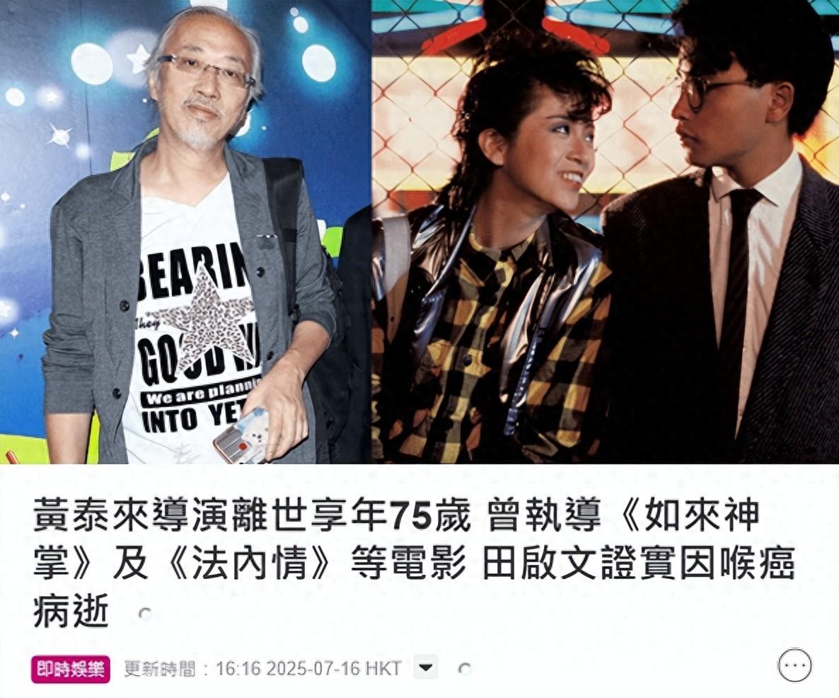 僅僅相隔一天時間,港媒報道稱香港著名導演黃泰來去世了,享年75歲。