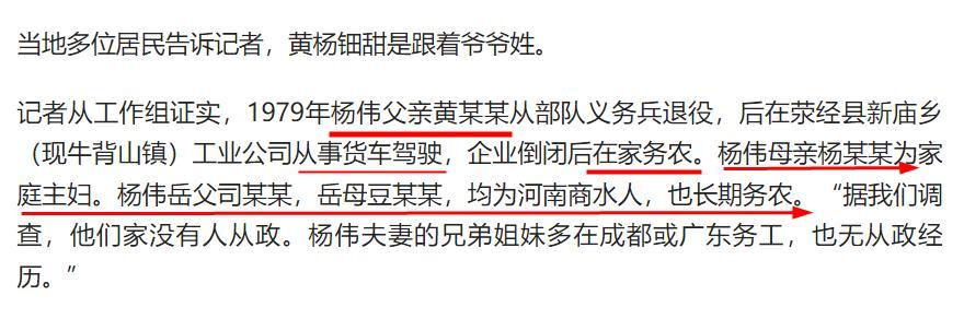 她的父親楊偉的確存在問題,主要是違規經商和隱瞞違規生二孩的事情。