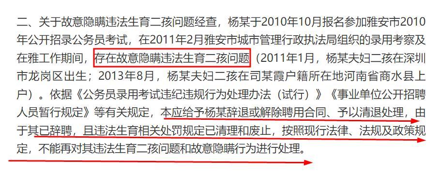 在隱瞞違規生二孩這件事情上,楊偉也沒有處分,一是因爲他已經不是公職人員,二是因爲現在生育政策已經改變了,和以前不一樣了。