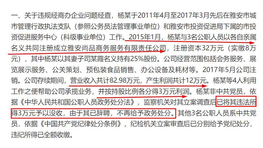 當年楊偉和其他3位公職人員創辦了一家公司,每人一共賺了3萬元。