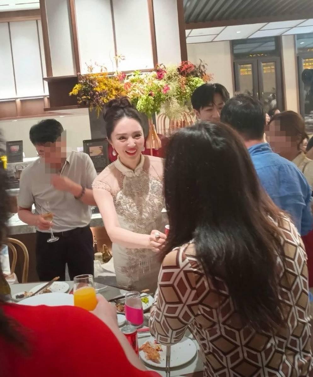 從照片中還可以看到董璇的好友佟麗婭和關悅都去參加了婚宴。