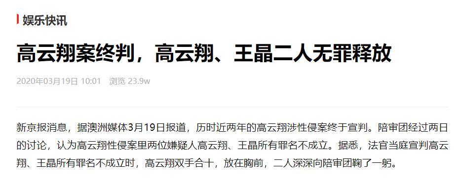最終在2020年,高雲翔和王晶被宣佈無罪,他們安全回國。