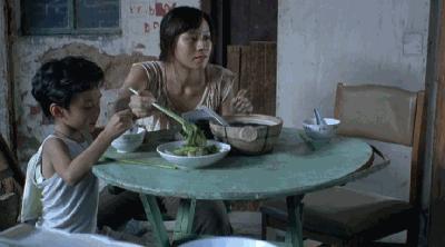 這個失去了一切的女人依然固執的在桌上擺上三個空碗,喫着空氣,維持着已經不再的幸福。