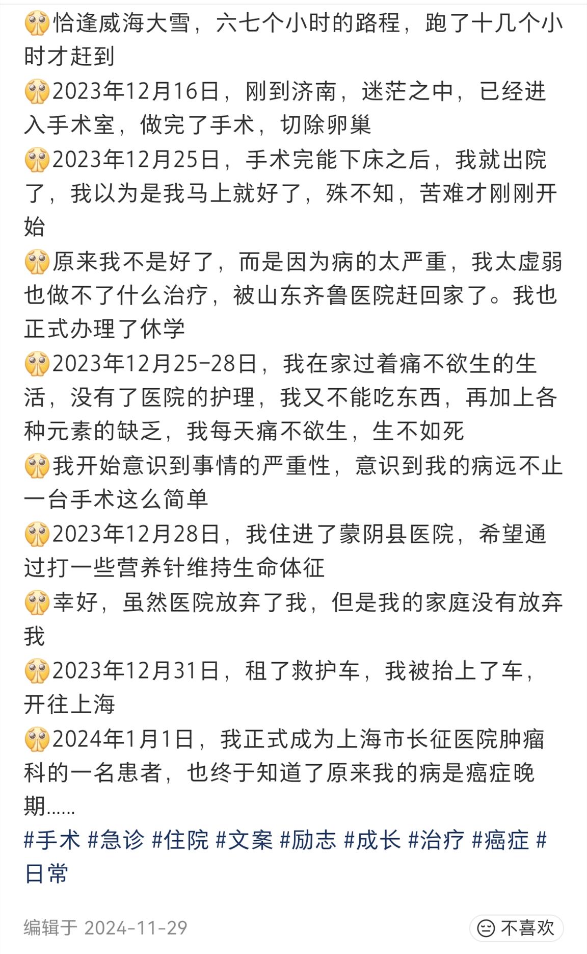 這位抗癌博主網名叫“亮晶晶的雯仔”,真名叫張敬雯,是山東大學的一名學生。