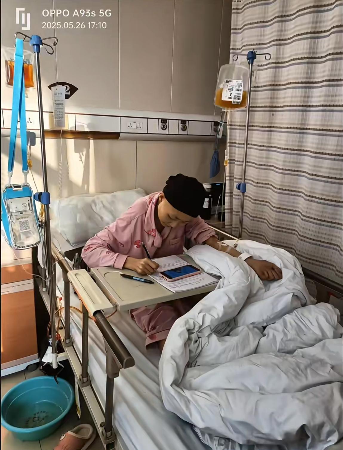 即使身體被病魔摧殘着,她也沒有放棄學習。