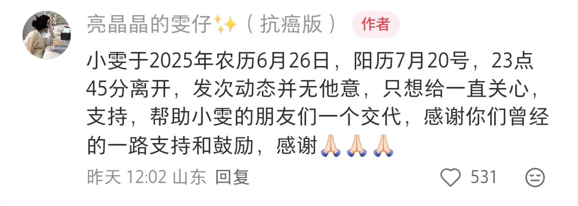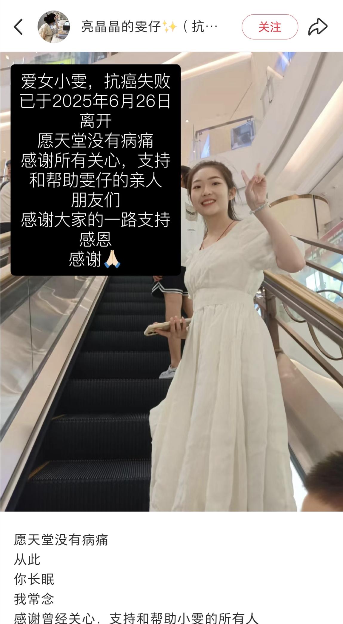 近日,一位年輕的抗癌博主去世了,令網友們心痛不已。