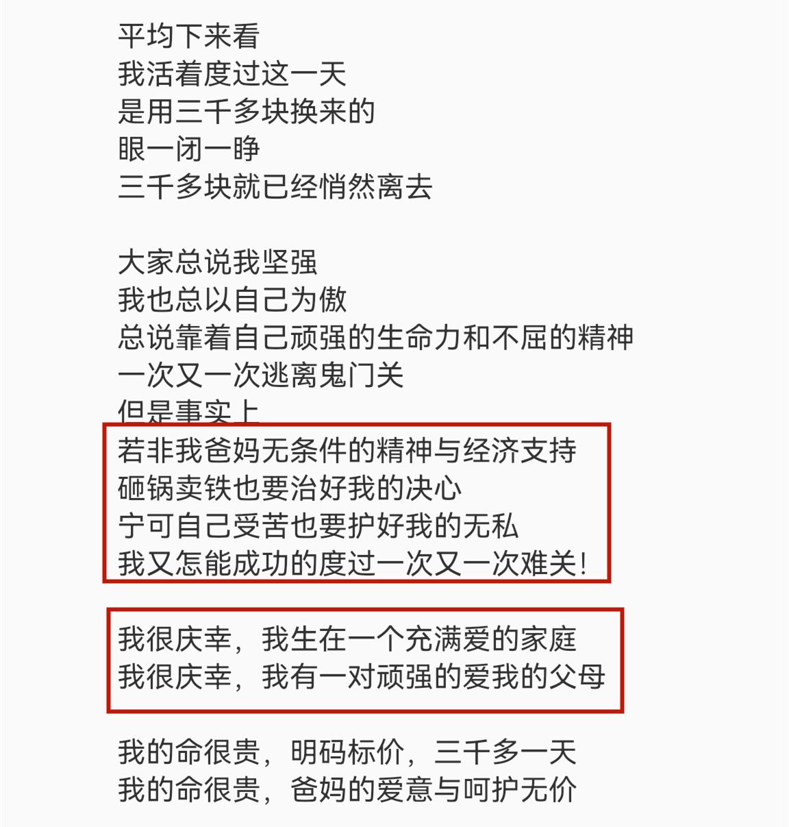抗癌需要花很多錢,她的父母一句怨言也沒有,砸鍋賣鐵爲女兒治病。