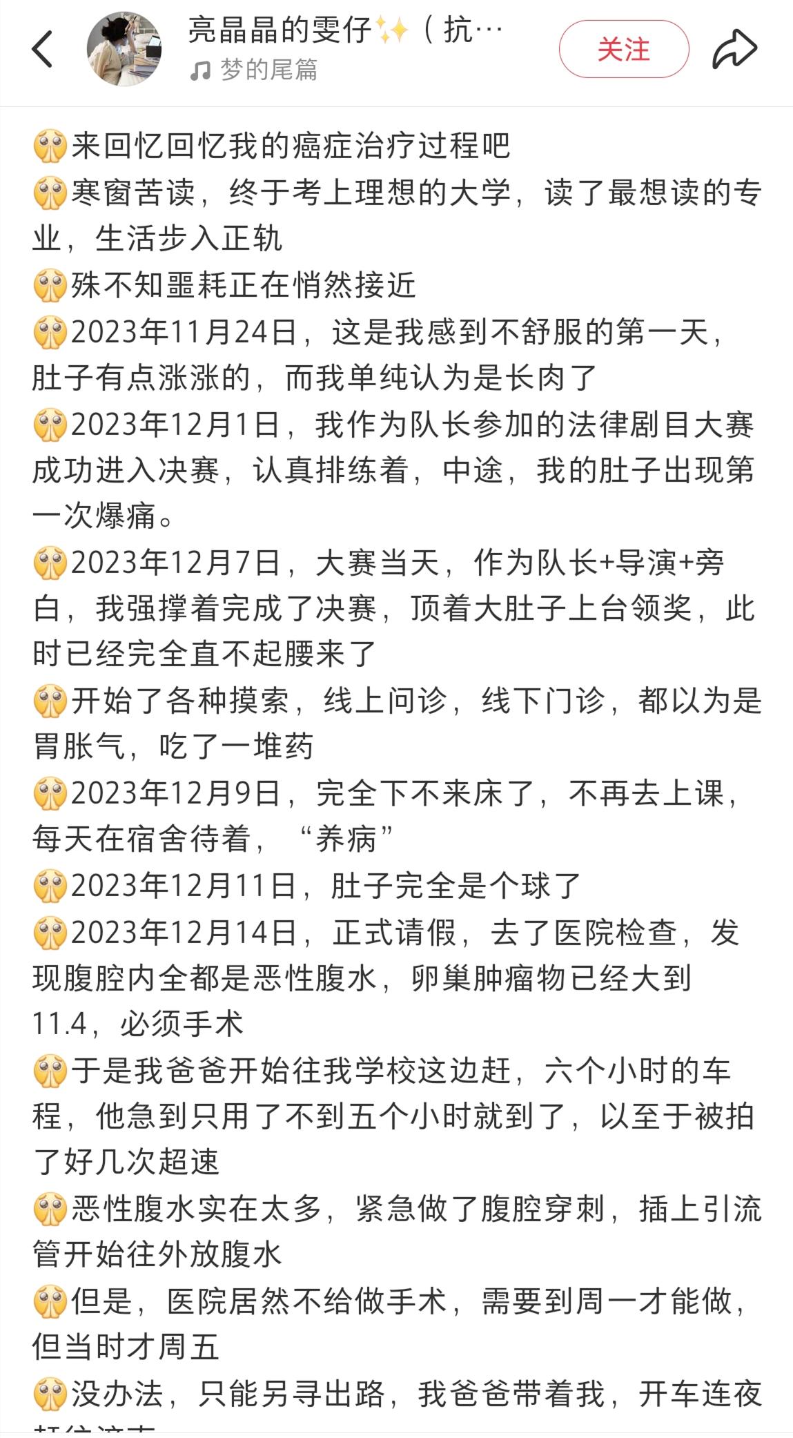 這位抗癌博主網名叫“亮晶晶的雯仔”,真名叫張敬雯,是山東大學的一名學生。