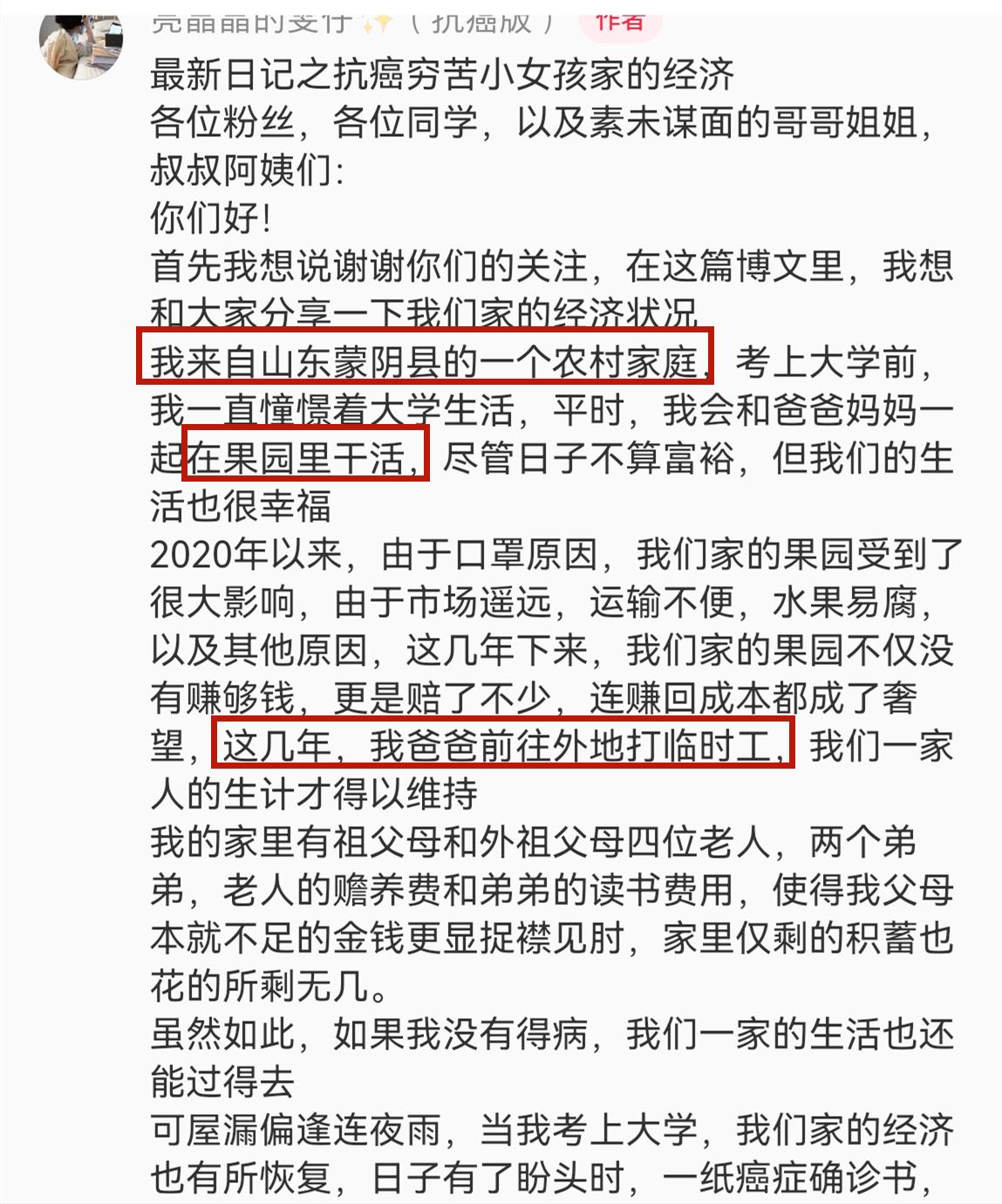 這位抗癌博主網名叫“亮晶晶的雯仔”,真名叫張敬雯,是山東大學的一名學生。